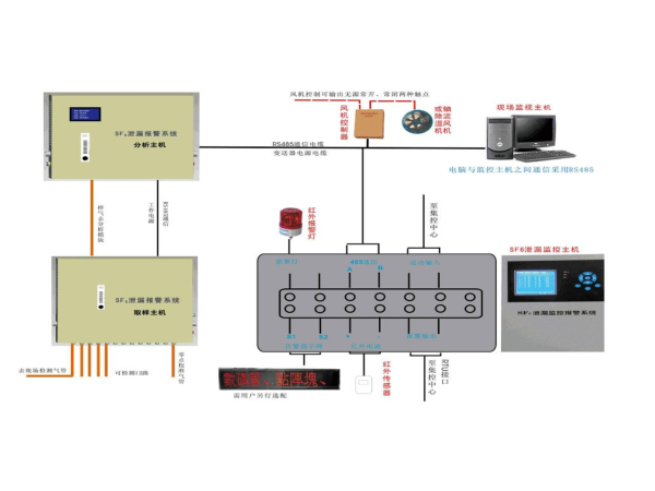 查看详情系统概述ZD2000B型气体泄漏定量报警系统主要应用在变电站内35KVSF6开关室及500KV、220KV、110KVGIS室对SF6组合电器设备室环境中SF6气体泄漏情况和空气中含氧量进行实时监测。极大地提高了无人值守变电站运行的安全性,特别是对日常巡视和维护人员的人身安全得到可靠的保障。主要由监测主机、SF。/0,双气体变送器、风机控制器及辅助功能组成。系统结构上更加小巧,安装更加简单。适合面积较小的场合,节省投入成本。系统组成1、监测主机主要完成系统绝大部分控制、协调、显示、输出等功能。采用的是TFT真彩工业级显示屏,图形化界面设计,操作更加方便,多种外形设计,适合现场安装。2、SF./O双气体变送器主要完成对SF/O的检测功